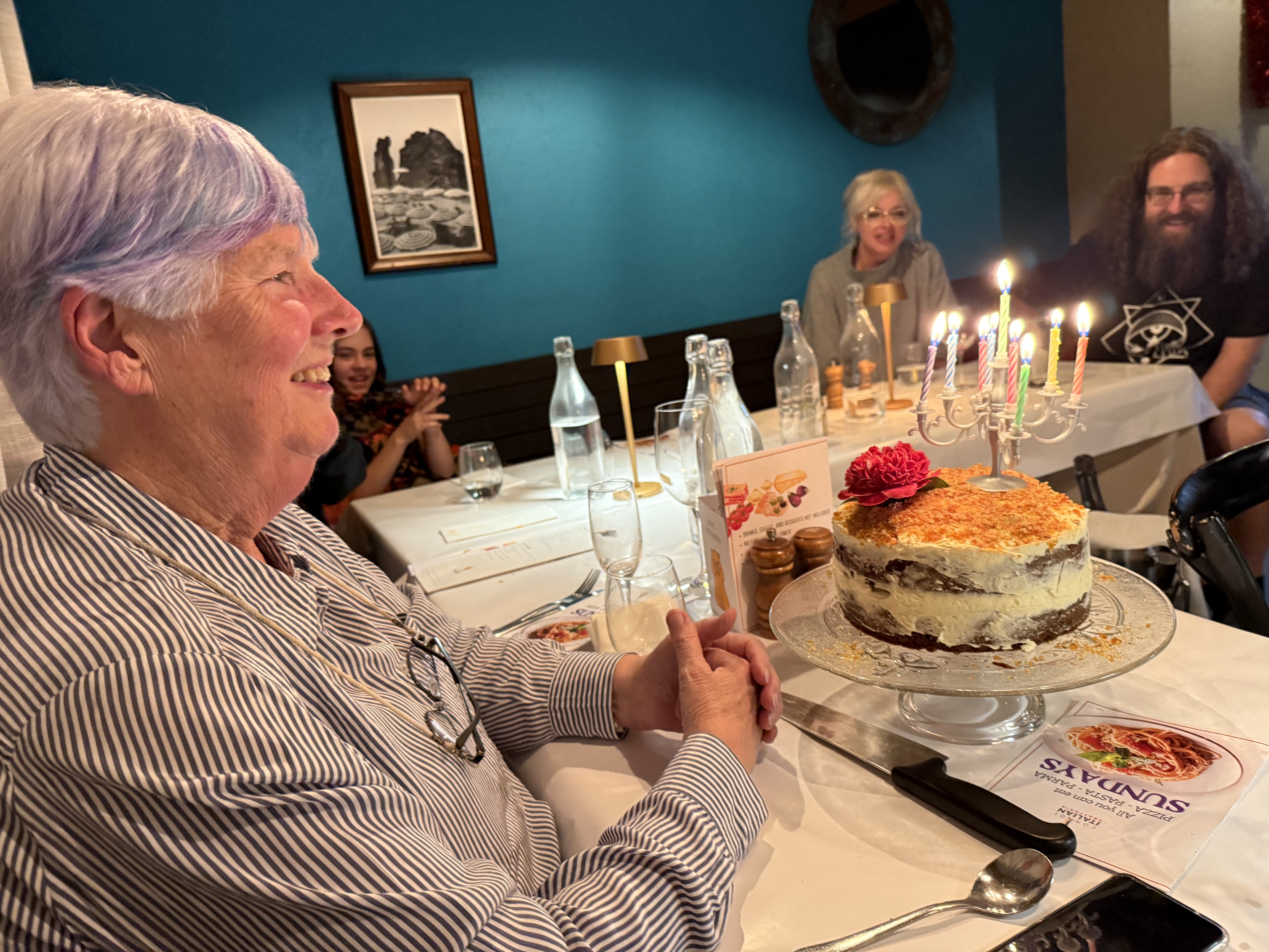 Camberwell: Connoi Trattoria: Barb's birthday bash: Barb and cake