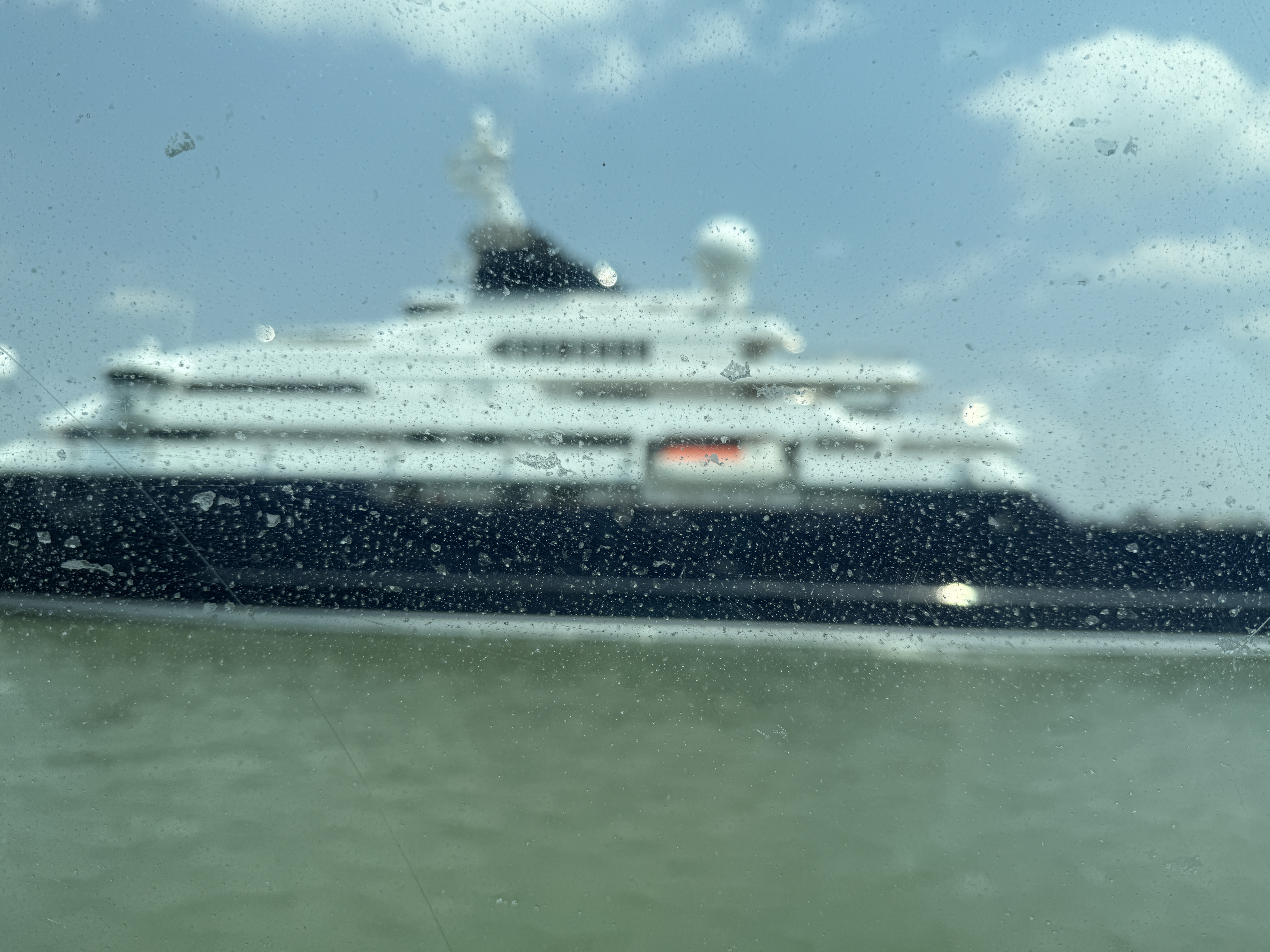 Cairns: the harbour: ship through dirty window