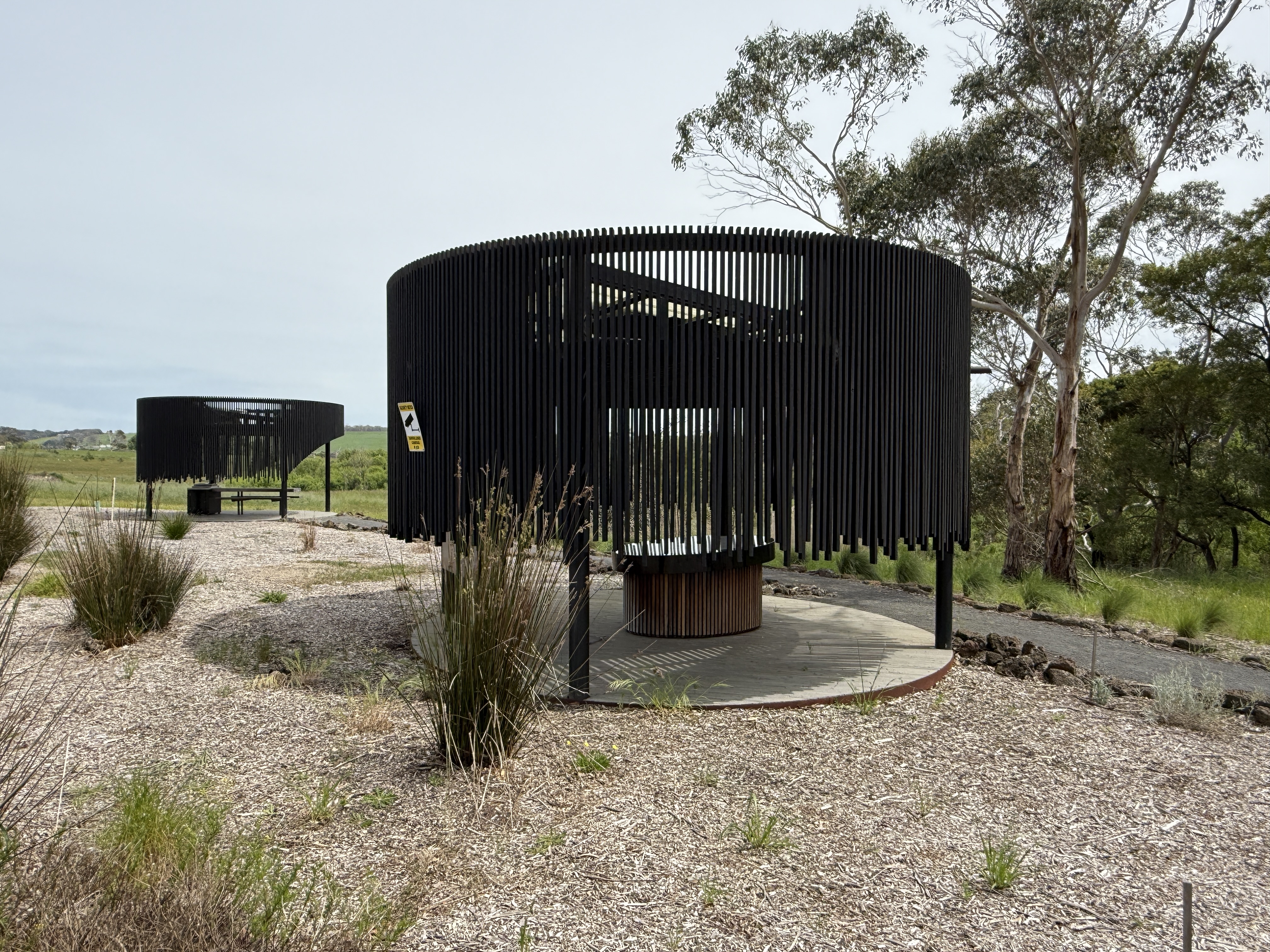 Tyrendarra: Reserve Rd: Budj Bim: picnic and map buildings